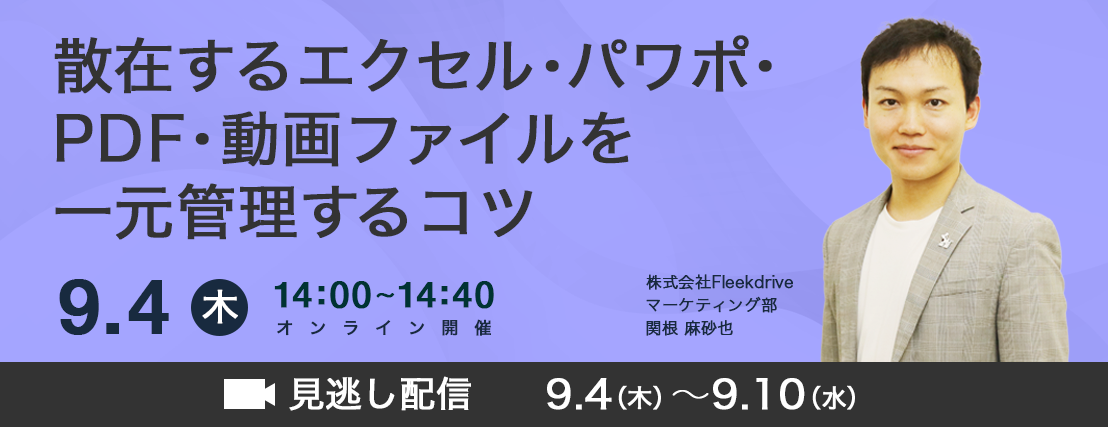 本セミナーでは、「ファイル管理の一元化がもたらす業務改善」をテーマに、実例を交えながら安全で効率的なファイル管理の方法をご紹介します。
