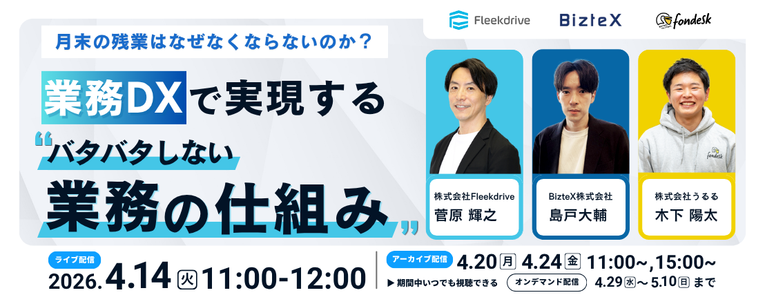 本セミナーでは、月末業務がなぜ非効率になりやすいのかを整理した上で、情報の一元化による業務基盤の整備、業務フローの自動化、差し込み業務の削減といった観点から、“残業を生まない業務の仕組み”をどのように実現するのかを具体的に解説します。業務の整理・可視化にとどまらず、現場で実践できる業務改善のアプローチや事例を通じて、「業務が回る状態」を作るためのヒントをお届けします。日々の業務に追われながらも、改善の必要性を感じている方、業務DXを進めたいが何から着手すべきか悩んでいる方におすすめの内容です。
